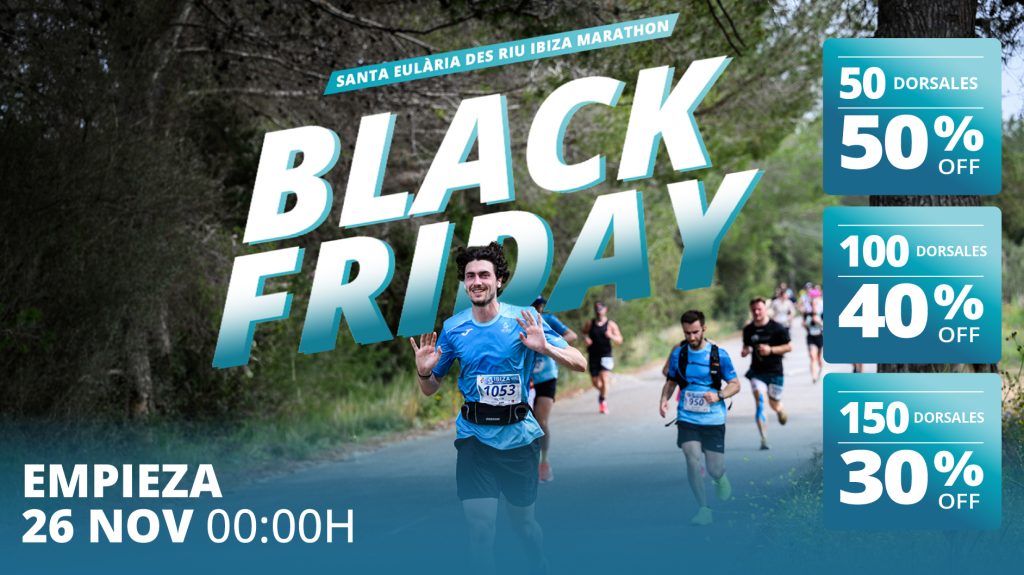 El Santa Eulària Ibiza Marathon activa su Black Friday más esperado, una promoción exclusiva y limitada que permitirá a los corredores asegurarse su dorsal al precio más bajo del año. La oferta estará disponible solo durante 72 horas, del 26 al 28 de noviembre, o hasta agotar existencias.