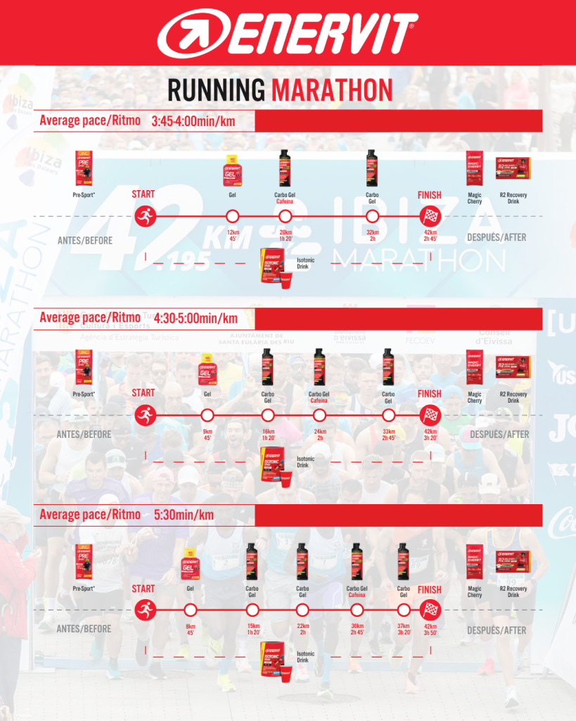 To tackle the Santa Eulària Ibiza Marathon with full confidence, proper physical preparation is only part of the equation. Having a well-defined nutrition strategy is just as essential. Knowing what to take, when to take it, and why can make the difference between enjoying the experience and suffering through the final kilometres. With Enervit products, it is possible to stay ahead of energy depletion and maintain a steady carbohydrate intake throughout the race.
